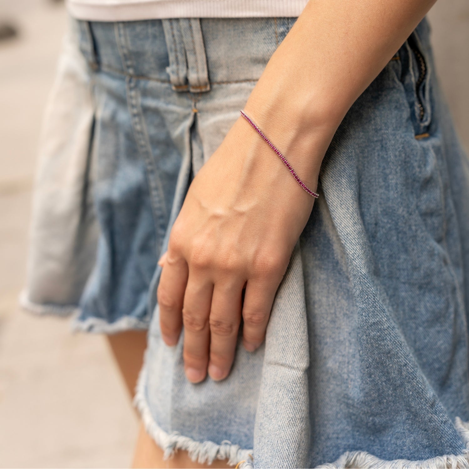 Elevate your style with this Fine Sterling Silver CZ Ruby Tennis Bracelet, featuring 1.75mm fine gemstones set in a sleek 2mm band. Crafted from high-quality sterling silver, its vibrant rubies and hand settled sparkling cubic zirconia create a stunning, elegant look perfect for any occasion. Durable yet delicate, this bracelet adds a timeless touch of sophistication to your jewellery collection.