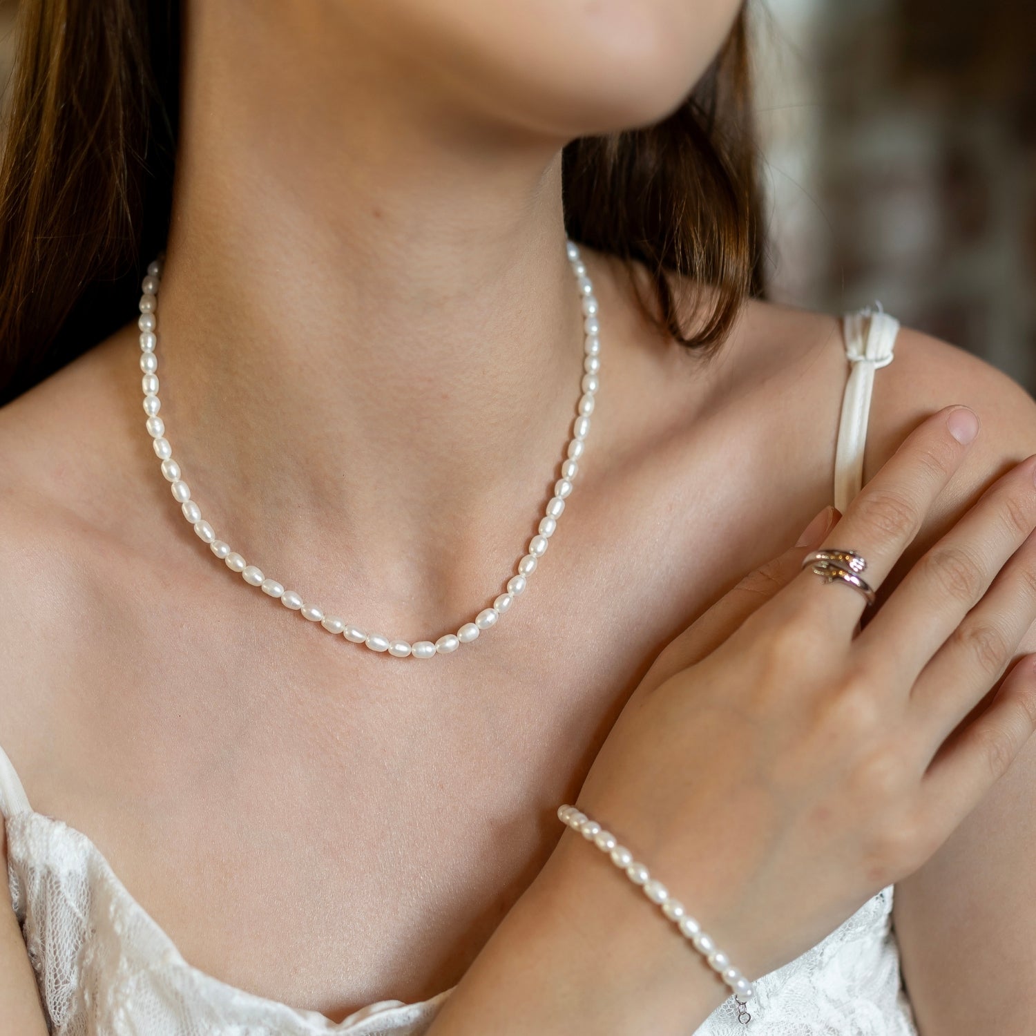 Elevate your elegance with this Natural Freshwater Real Seed Pearl Necklace and Bracelet Set. Crafted from genuine freshwater pearls, each piece offers a timeless, lustrous shine that complements any outfit. Perfect for special occasions or everyday sophistication, this set adds a touch of classic beauty and refined charm to your jewelry collection. Experience the natural allure and delicate craftsmanship that make these pearls truly unique.