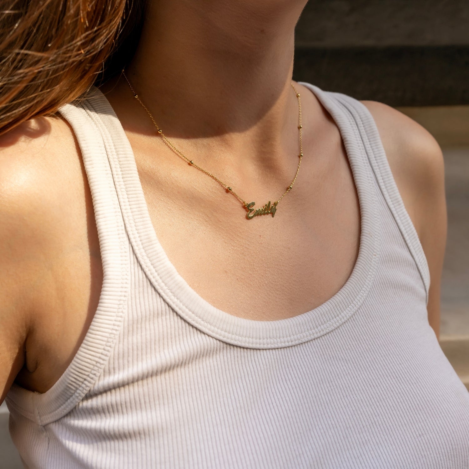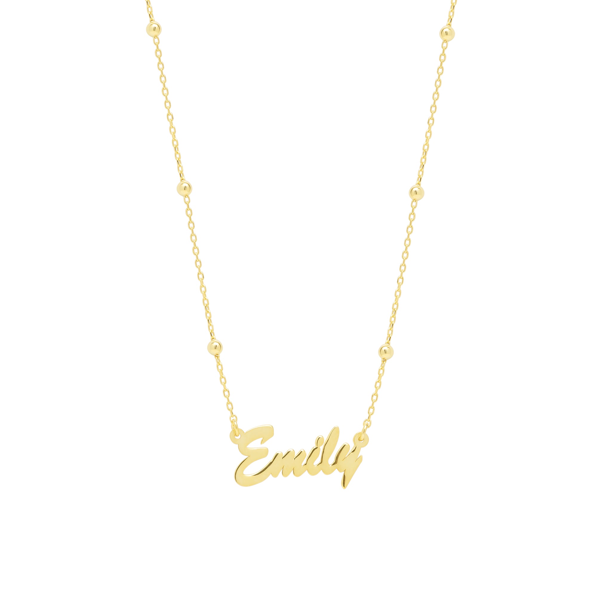 Elevate your everyday style with this Fine Sterling Silver Satellite Beaded Signature Name Necklace. Crafted from high-quality sterling silver, the unique satellite bead design adds texture and shine while keeping your personalized name front and center. Its delicate yet durable construction makes it perfect for layering or wearing solo, ensuring a meaningful and elegant accessory that complements any outfit with timeless charm.