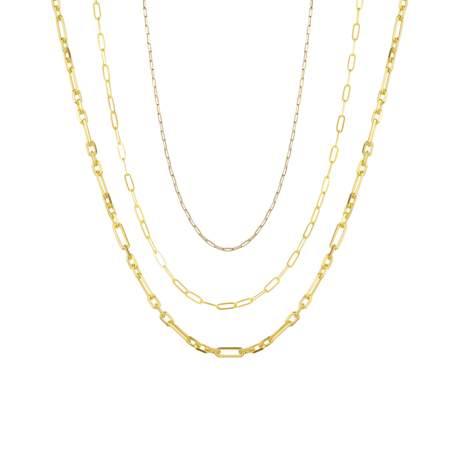 Paperclip Link Chain Sterling Silver Necklace Layering Set