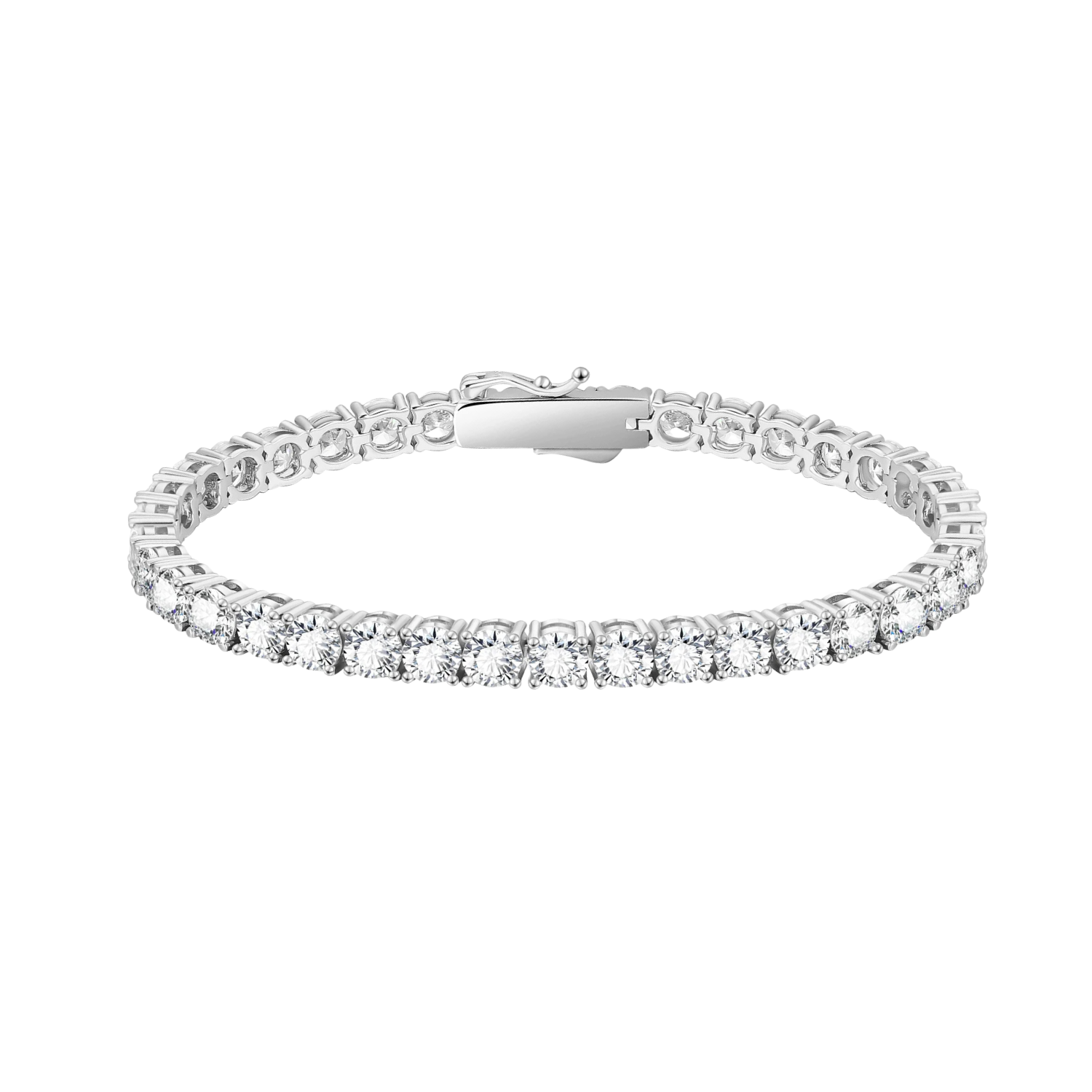 Elevate your elegance with this Sterling Silver 5mm Tennis Bracelet, featuring large CZ gemstones for captivating brilliance. Its timeless design pairs perfectly with any outfit, adding a refined sparkle that draws admiration. Crafted from quality sterling silver, this bracelet offers lasting shine and comfort for everyday wear or special occasions. Make a striking statement with this sophisticated accessory.