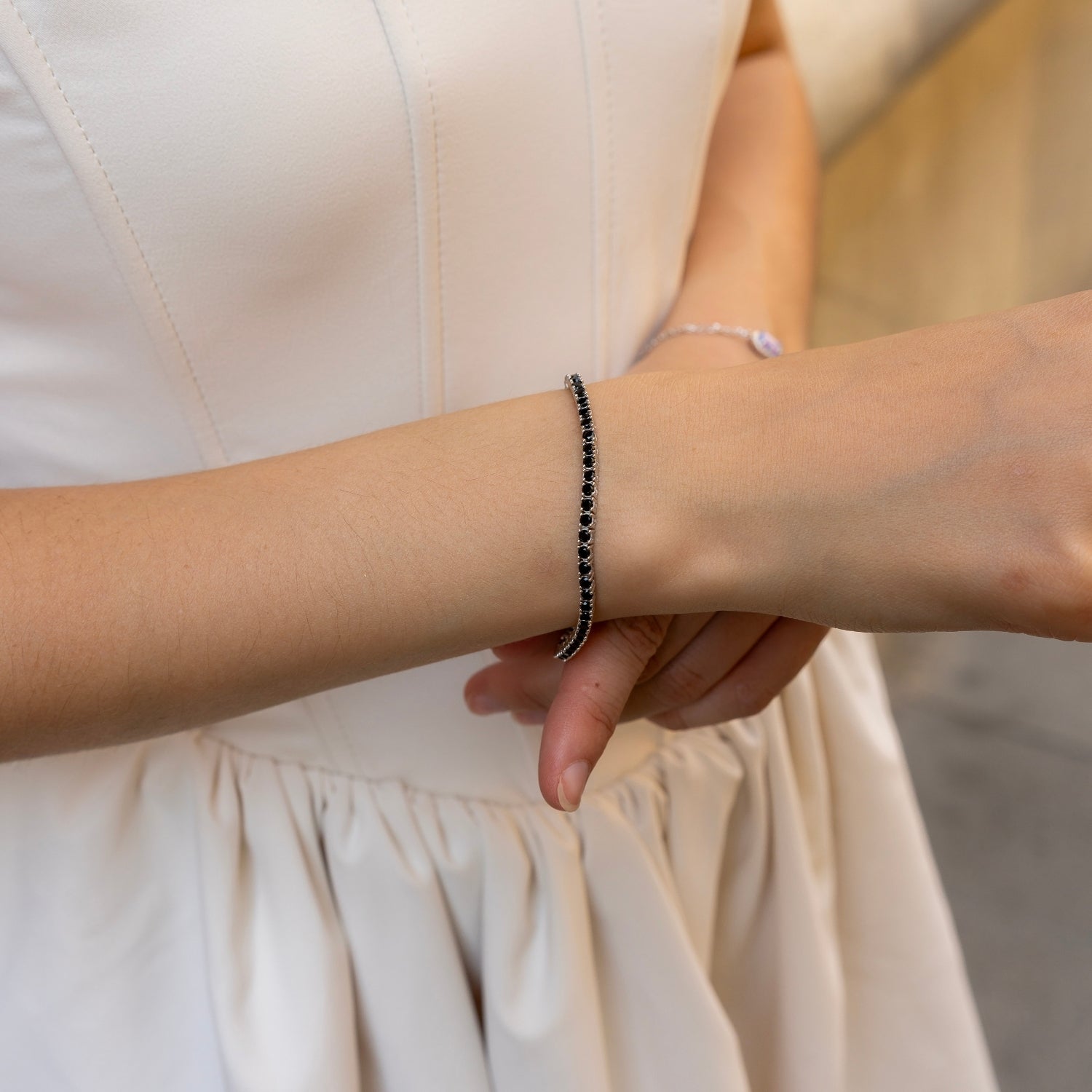 Elevate your everyday elegance with this stunning Sterling Silver Black Tennis Bracelet, expertly crafted at a versatile 7-inch length. The sleek black gemstones create a sophisticated contrast against genuine sterling silver, delivering timeless appeal that transitions seamlessly from day to night. Whether you're dressing up for a special occasion or adding a touch of refined glamour to casual wear, this classic piece makes an undeniable statement. The secure design ensures your investment stays close, while the premium materials promise lasting brilliance and durability for years to come.