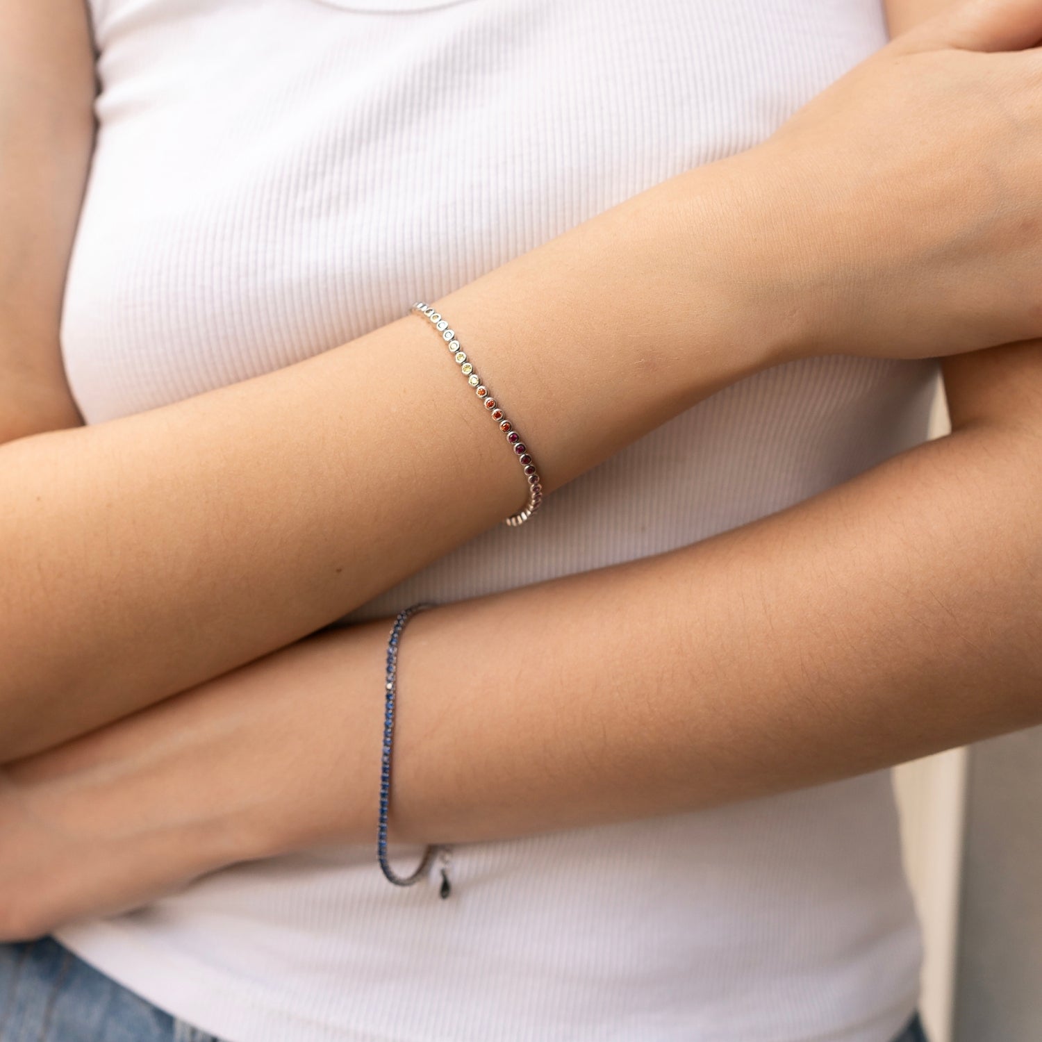 Sterling Silver Multicolour Bezel Tennis Bracelet