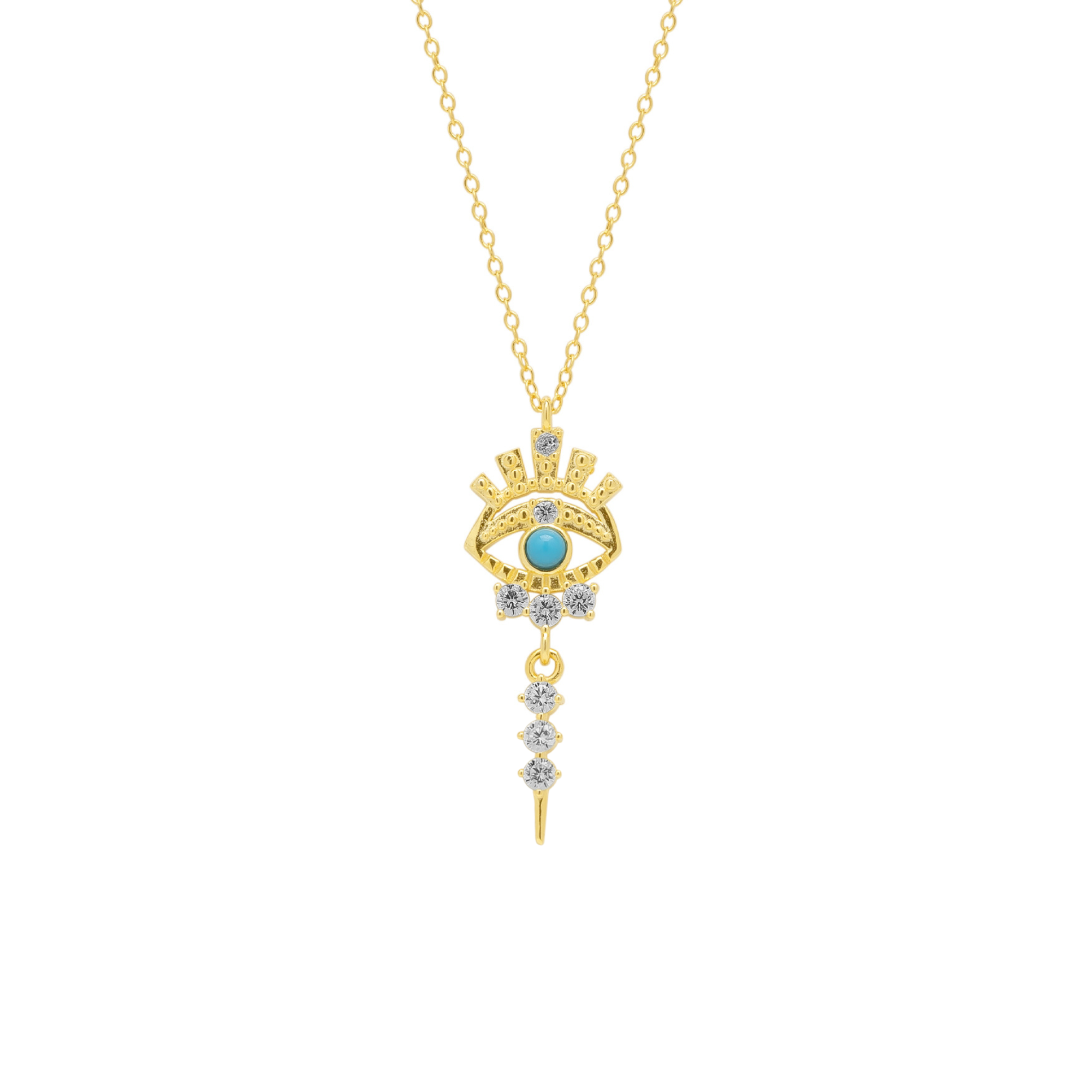 This sterling silver necklace features a striking turquoise evil eye pendant with delicate eyelash details, measuring 16 x 32 mm. Designed with a choice of 16 or 18-inch chain lengths, it sits perfectly to complement any outfit while offering protection and style. Add a unique touch of elegance and symbolism to your jewelry collection with this eye-catching piece.